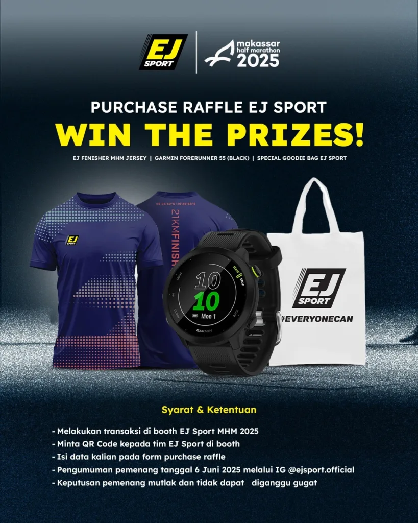 Beli produk EJ Sport apapun di booth resmi EJ Sport yang berada di venue Makassar Half Marathon 2025
